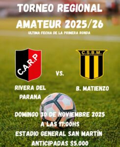 YA CLASIFICADO RIVERA DEL PARANÁ RECIBE A BENJAMÍN MATIENZO